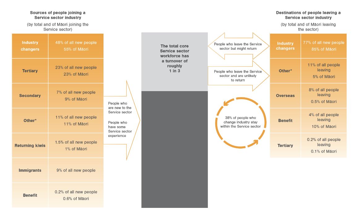 The Service sector is an accessible option for many. Our research has shown that the demographic characteristics are largely representative of New Zealand in terms of age, gender, ethnicities and regional distribution.