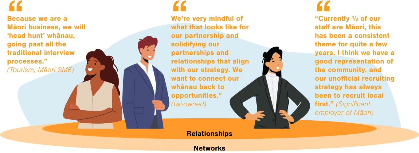 “We do a fair bit of staff sharing through businesses. So it’s helpful if we can top up the amount of hours and the other Cafe because it’s quite quiet. They come and do a day here or one at the restaurant”. (Food & wholesale, Māori SME)